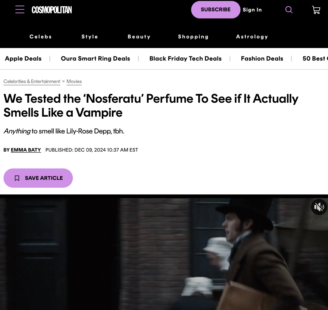 Over the course of my time at Focus, I’ve worked publicity campaigns on award-winning films such as Conclave and Nosferatu, securing press coverage opportunities for talent such as the Wiser Than Me podcast with Julia Louis Dreyfus as well as partnerships like the $20,000 sarcophagus bed and the Nosferatu Heretic Perfume.